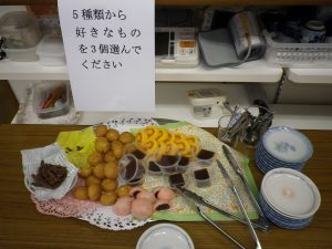 5種類のおやつから自分で3種類選んでいただき